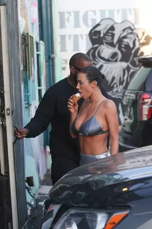 The Yeezy architect was seen licking an ice cream cone while her husband called the shots on what to do next. He was seen having a blast while laughing with his wife as the pair headed to an undisclosed destination in the daytime.
