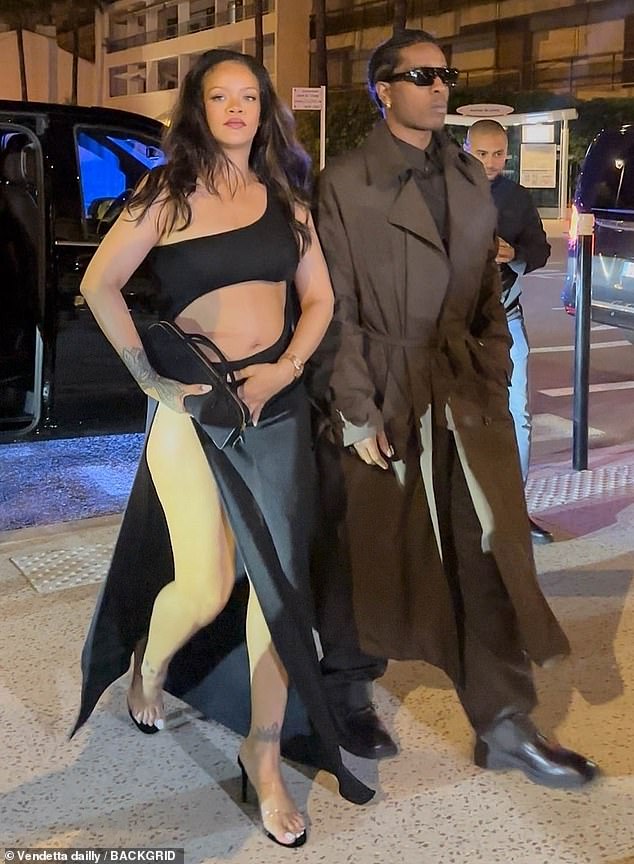 Pregnant Rihanna was seen baring her baby bump in a barely there black dress on a Cannes date night.