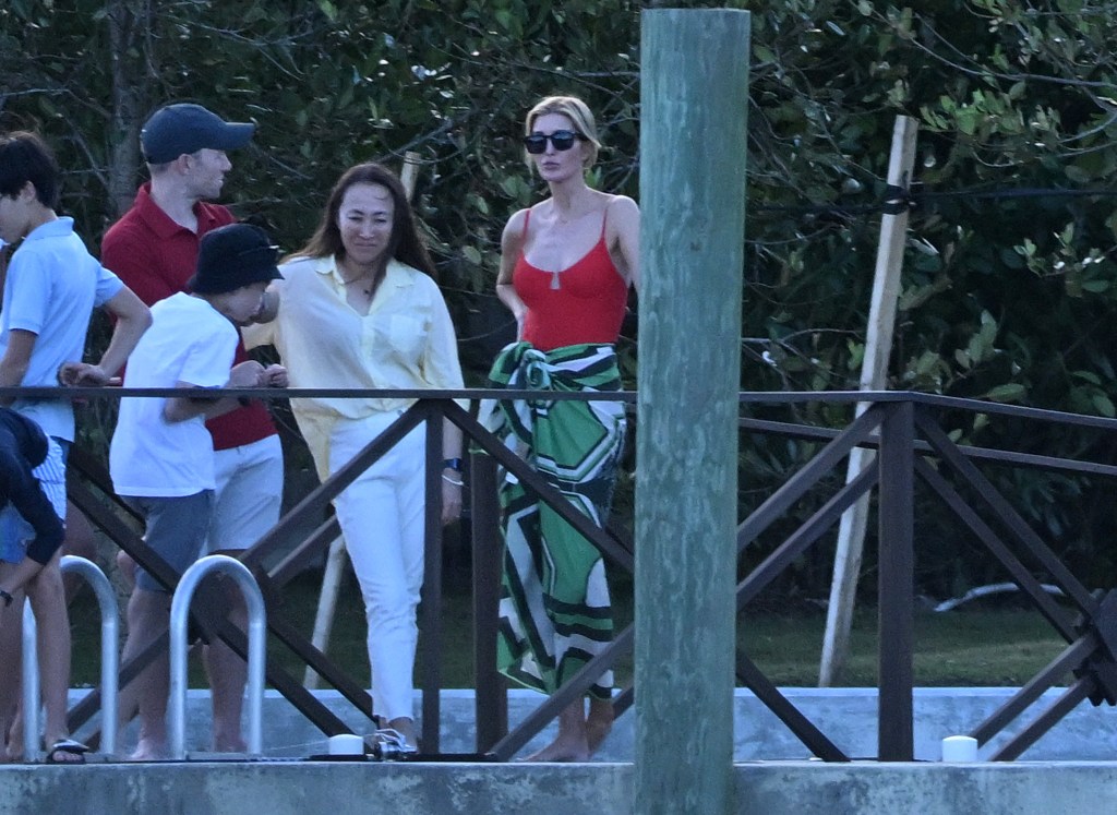 The attire came with a green-toned sarong wrapped around her figure at the famous waterfront mansion.
