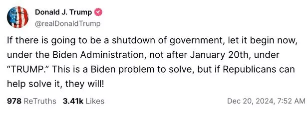 This includes how strongly he felt that it was time for a complete shutdown under the Biden administration. The news comes after politicians were seen rejecting a spending bill that was endorsed by the Republicans.