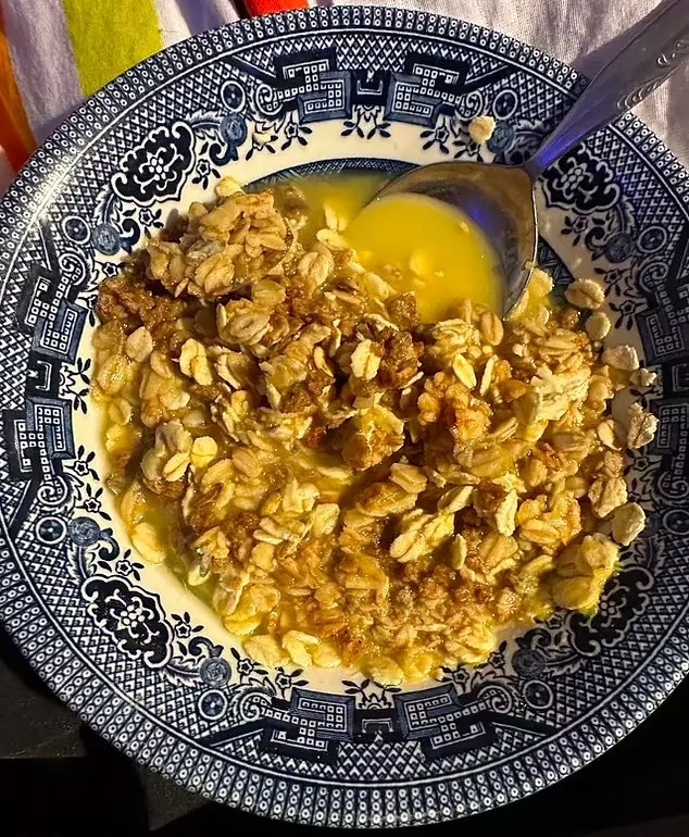 “Mine was cornflakes and bran with dried strawberries in… with orange juice on top instead of milk,” Ramsey said, prompting visibly shocked Pascal to repeat the words ‘orange juice.’