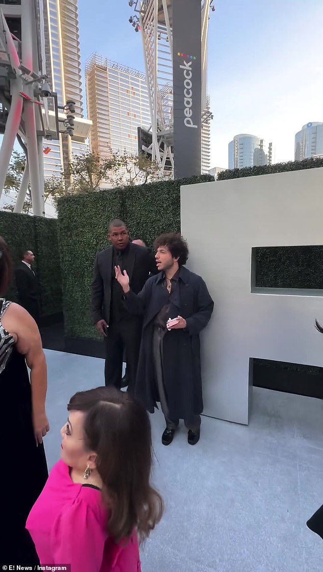 Blanco showed up in a dark blue trench coat that featured a grey ensemble underneath. He stood right next to the singer for a while, right before being asked to leave the Red Carpet.