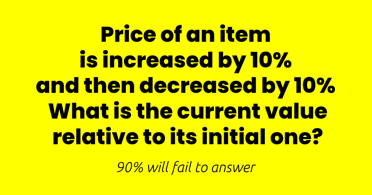 The question above asks you if the price of one item increases by 10% and then decreases by 10%, what is the current value relative to this initial one?