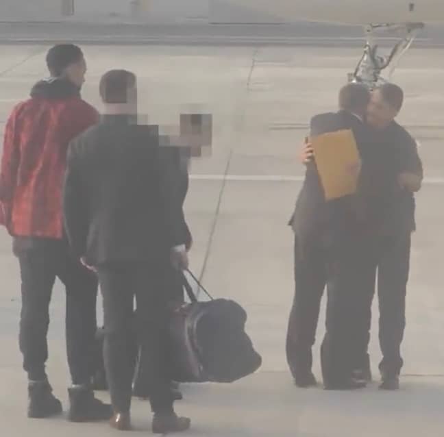 The unbelievable moment showing the high-profile and controversial prisoner deal between Russia and the US is now going viral online.
