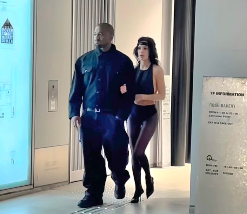 The Yeezy architect put her body on full display in the barely-there ensemble while on the run with her man during the night hours.