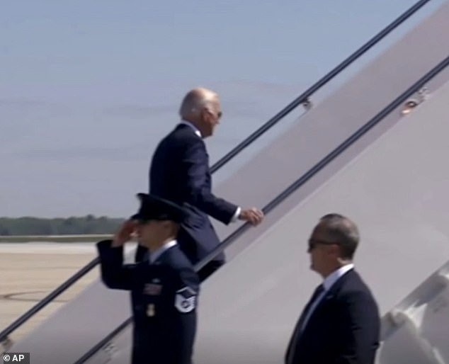 In what is being dubbed as a repeat incident of the President from last year, Joe Biden has nearly taken another fall while walking up the steps of his Air Force One jet.