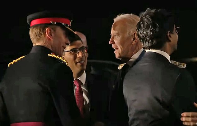 The President was received by UK Prime Minister Rishi but after spending a few courteous moments, he was seen pushing him aside while focusing his attention on welcoming an American diplomat.