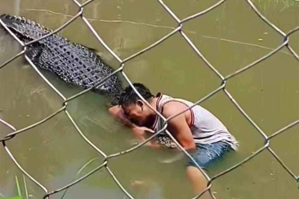 Suddenly, the fully grown female croc dubbed Lalay was seen charging towards the individual, sinking her fangs into his arm.
