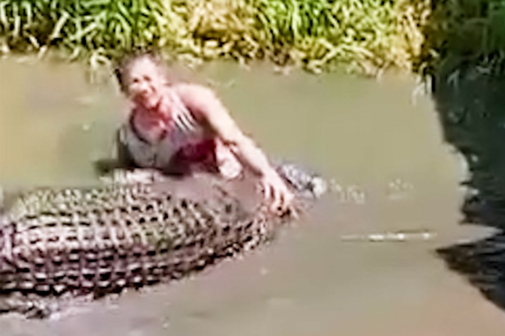 She then grabbed hold of her victims’ thighs and flipped over several times in an attempt at a deadly death toll. This is the method by which crocodiles attempt to tear the prey apart.