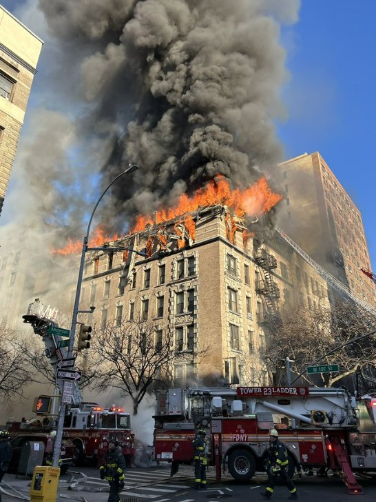 The incident took place at 201 West 107th Street, at about 8:20 am, and swiftly spread through the building’s roof and upper floors. Shocking images were shared on social media that showed flames and thick black smoke billowing from the building.
