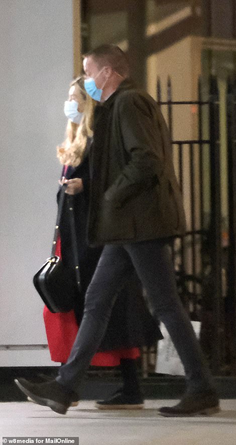 She was masked and heavily protected by a bodyguard carrying her overnight bag. Meanwhile, her husband accompanied her in his traditional wooly hat, closely flanked by two policemen, and carrying a suitcase and his Bluetooth speaker.