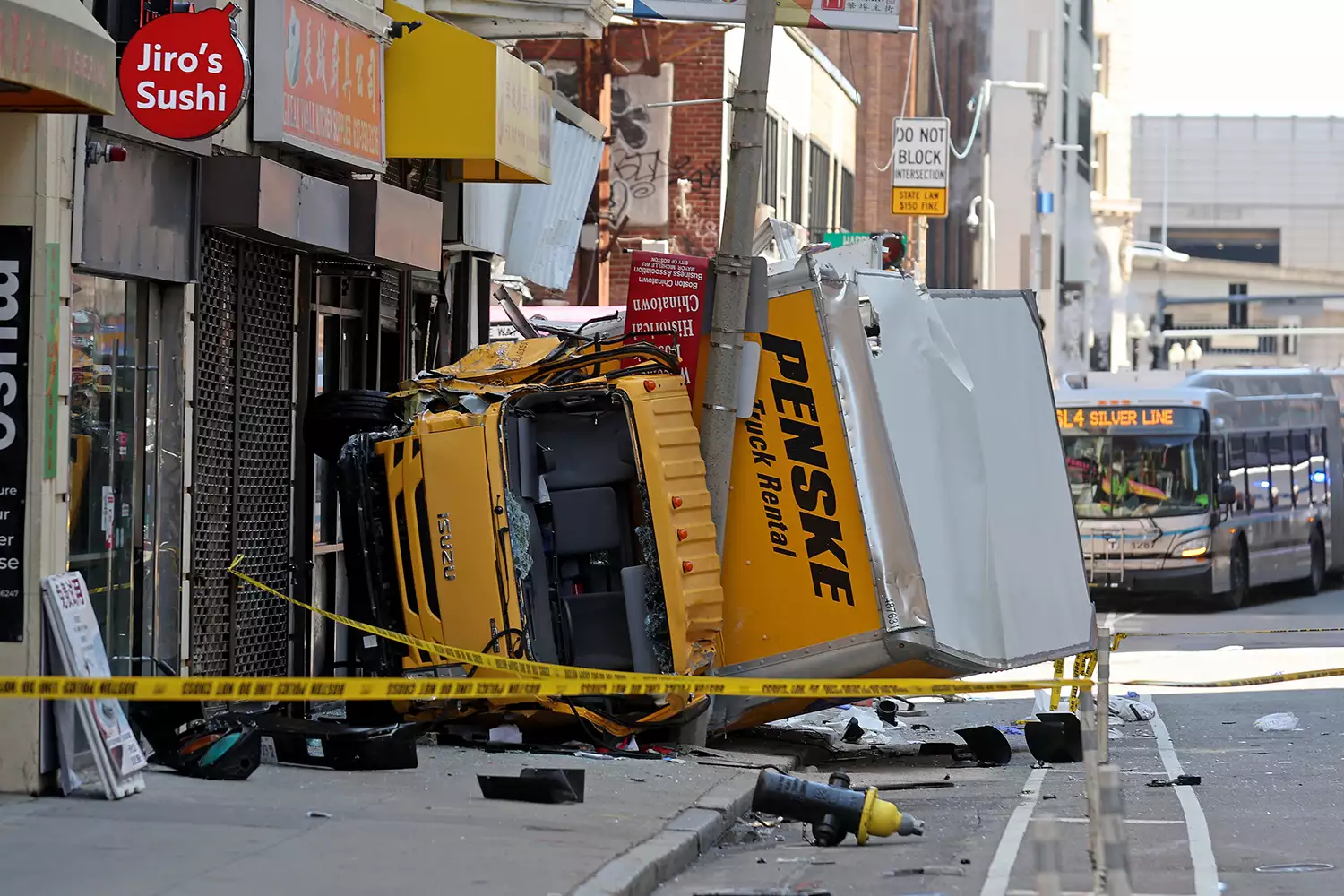 Images from the scene were shared through the X app that showed the Boston Fire Department showing a yellow colored Penske truck sideways.