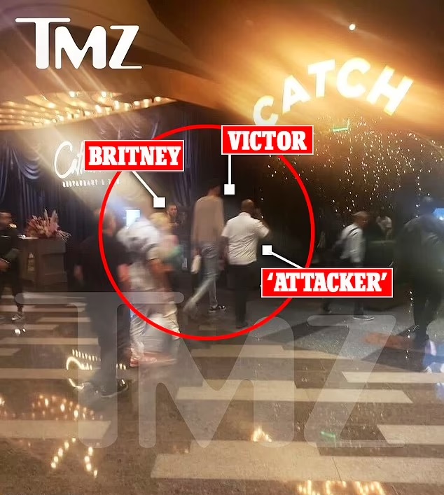 After touching the sportsman’s shoulder to get his attention, however, Spears was allegedly slapped by his head of security Damian Smith who reportedly used enough force to knock her off her feet.