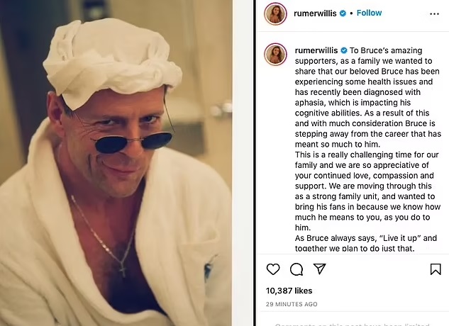 Earlier this year, the Hollywood legend’s family revealed that the actor has been diagnosed with aphasia, a disorder resulting from damage to the brain that affects communication and causes the victim to gradually lose the ability to speak or understand speech.
