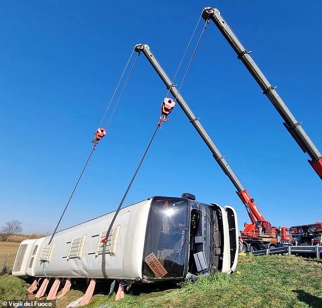 A bus carrying at least 50 refugees from Ukraine has reportedly overturned in Italy this morning.