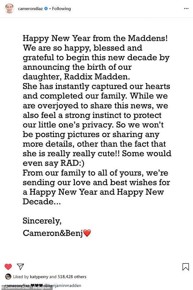 Actress Cameron Diaz wants the world to know that she’s a mother for the second time.