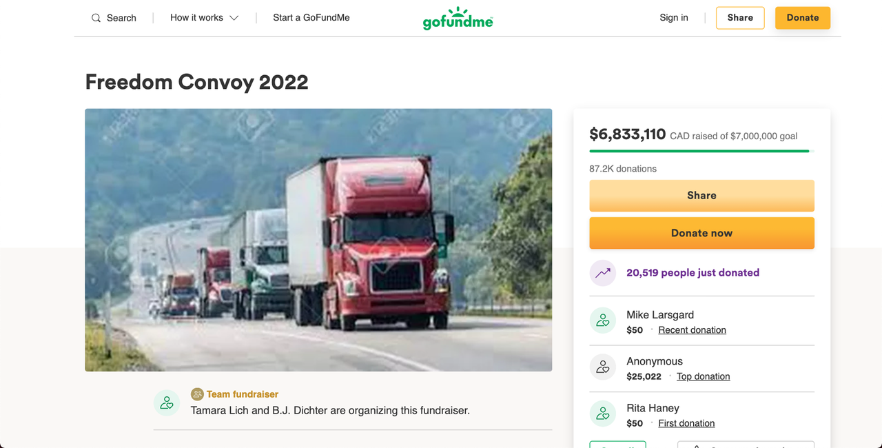 The page on which the account can be found is referred to as ‘Freedom Convoy’ and it comprises of all those Canadian truckers who happen to oppose the Prime Minister’s vaccine mandate and also disagree with his goverment’s harsh COVID restrictions in place.