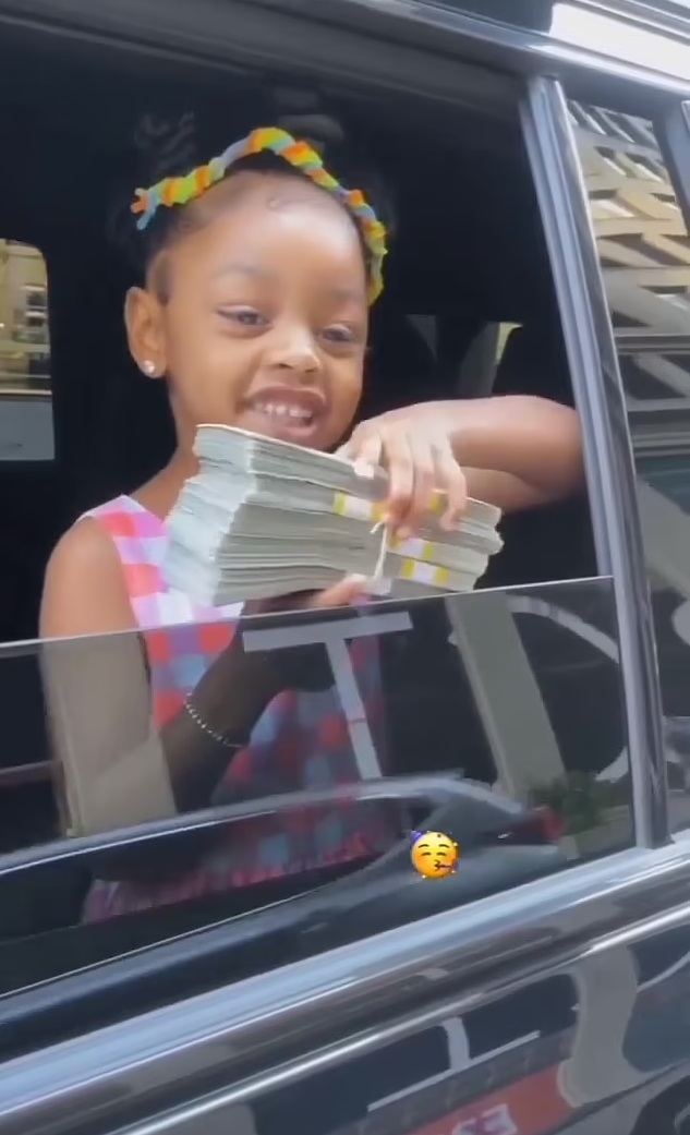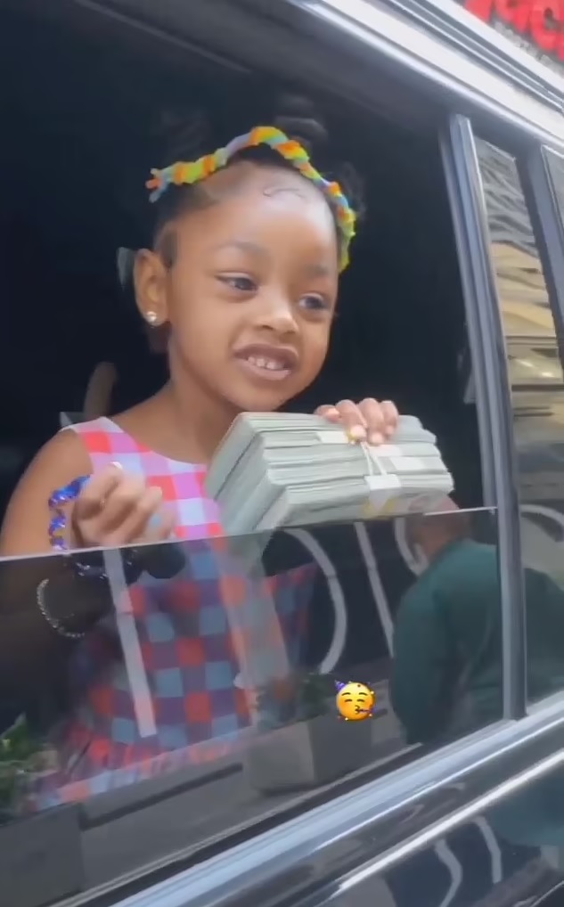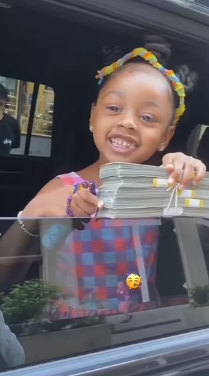 In a viral video marking the fourth birthday of Kulture, the daughter of the musician couple, the WAP hitmaker handed the little girl five stacks of cash amounting to $50,000 while Kulture was peeking from a car window.