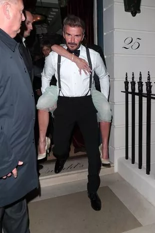 David Beckham is proving to the world that he’s the perfect husband after being pictured giving his wife a little assistance after a wild 50th birthday bash.