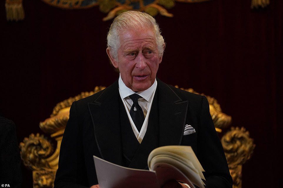 Moreover, plenty of well-wishers could be heard in the background, cheering the new Sovereign on after his Rolls Royce arrived this afternoon at Buckingham Palace.
