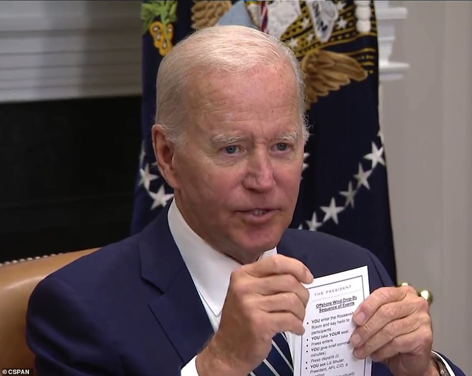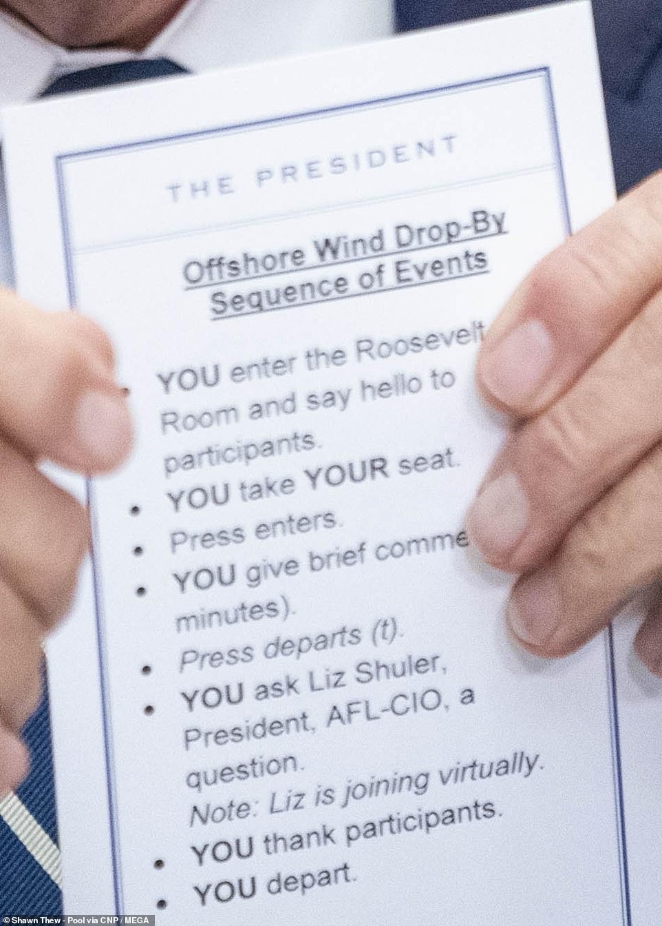 President Biden was left red in the face recently when he mistakenly showed photographers a cheat sheet full of instructions that were generated for him to follow.