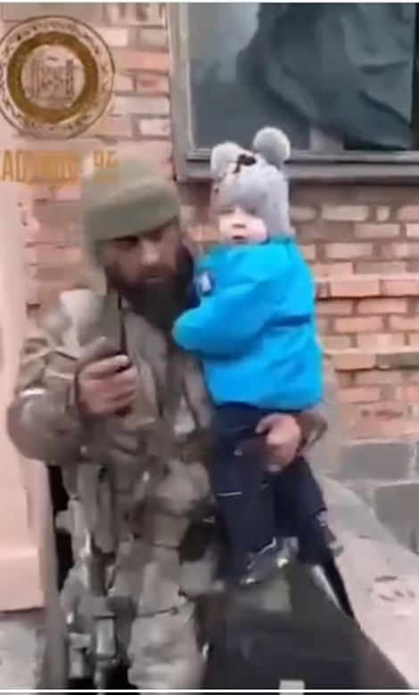The video then showed Chechen fighters coming out of a building with children in their arms.
