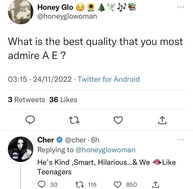 In the comment section, Cher further opened up about her relationship and shared her boyfriend’s best qualities which include him being “smart, kind, and hilarious.”