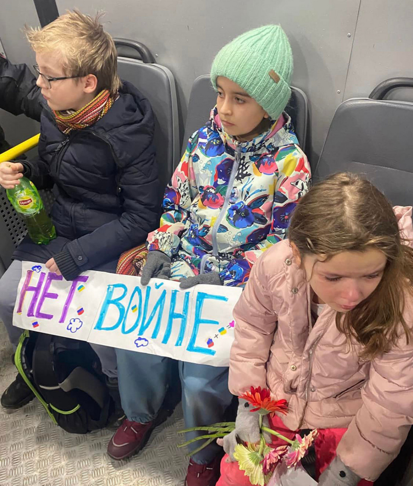 Viral footage has been released showing sobbing children being detained in Russia for taking flowers to the Ukrainian Embassy.
