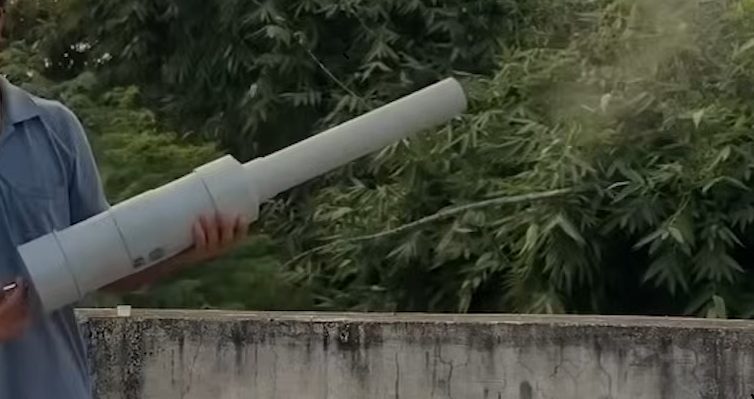These devices cost nearly 150 Indian Rupees and are made by mixing calcium carbide with water in a plastic or tin pipe to generate a giant blast sound.