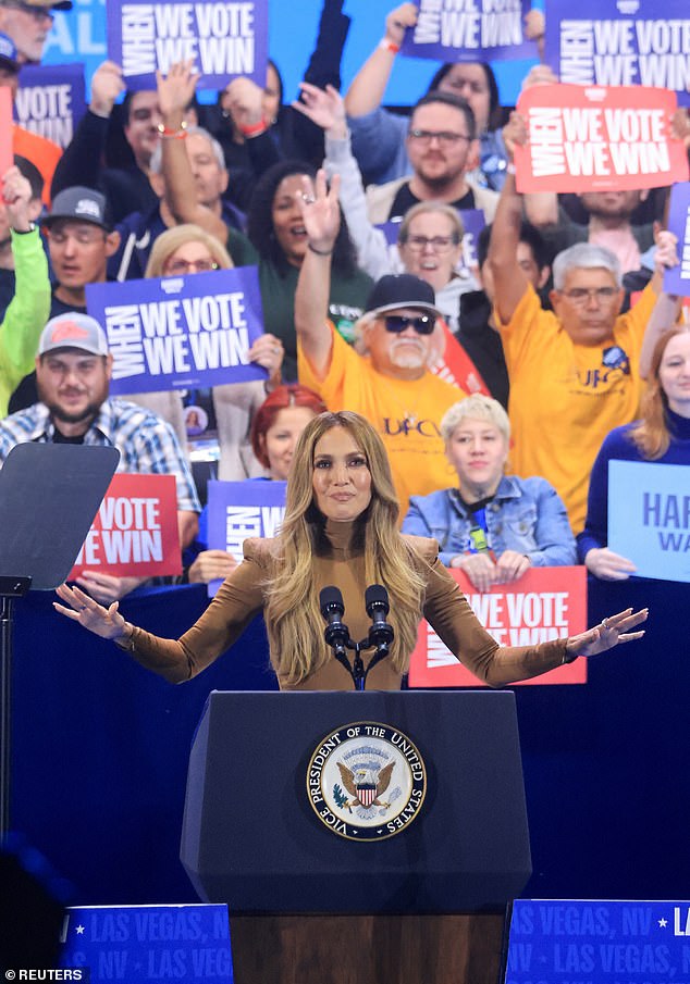 Jennifer Lopez brought forward a dose of Hollywood glamour recently to her campaign trail while urging voters in Nevada to give Kamala Harris a silver screen sending.