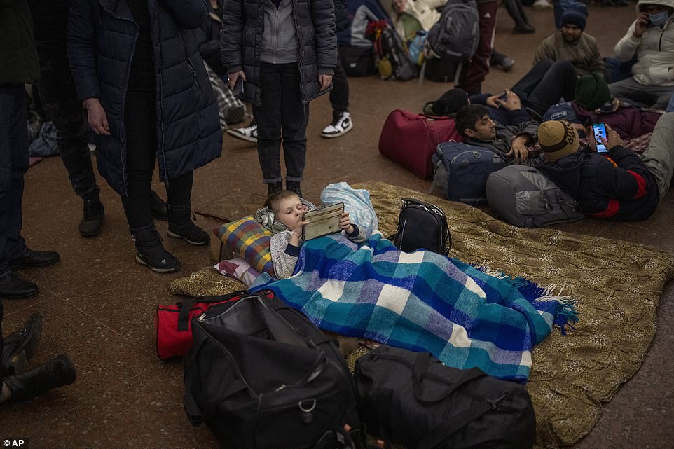 Ukrainian citizens crowded the subway stations as well as the bomb shelters amid greater fears for morning attacks.