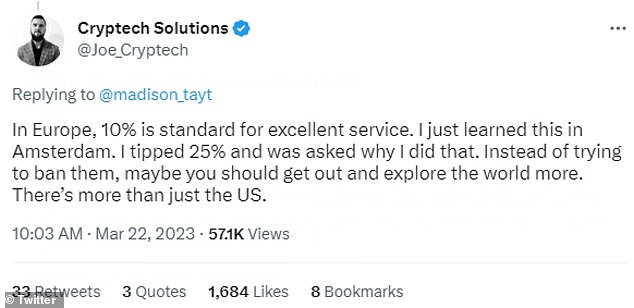 One netizen said that it was just so important for people to understand that Europeans are not used to giving high tips because of the fact that servers in that part of the world are usually paid well.