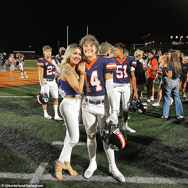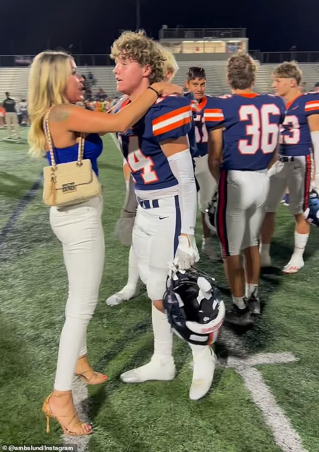 A mother from Utah who made the headlines for straddling her son on the field during a football match is breaking her silence.