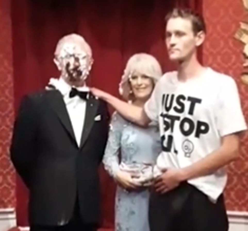 Horrifying video footage of the incident has taken the world by storm. And that’s when activists could be seen smearing the wax figure belonging to the King of Britain with chocolate cake.