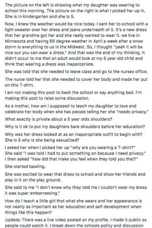And if that was not brutal enough, the note being sent out by the school about the dress being so inappropriate infuriated her and even confused her more.