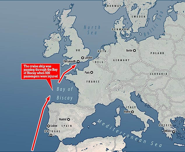 The Spirit Discovery Liner happened to be traveling back to the UK alongside the Bay of Biscay when all of a sudden, a giant storm came with winds.