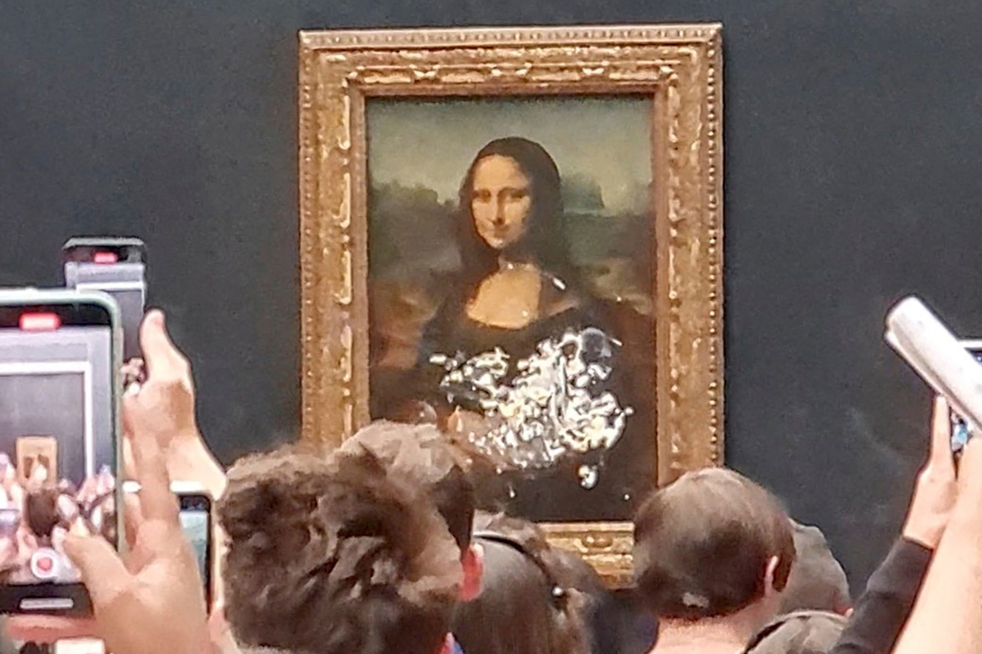 For those who may not be aware, the famous painting is stated to be inside a giant bulletproof glass. Hence, the cream-filled pie was smeared across the glass and not the painting.