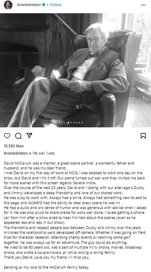 “David McCallum made every moment count, in life and on set. Let’s raise a jug and celebrate a funny fantastic authentic man,” he wrote.