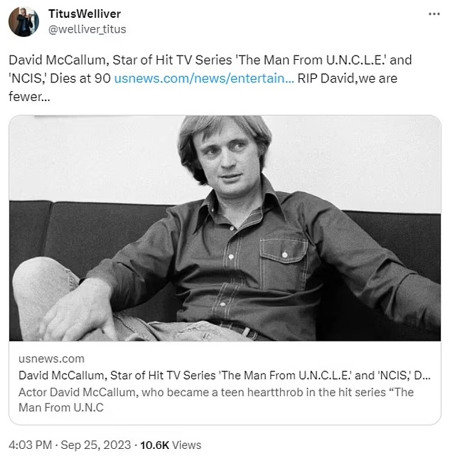 Tributes have begun pouring in for Scottish actor David McCallum after his sudden passing at the age of 90.