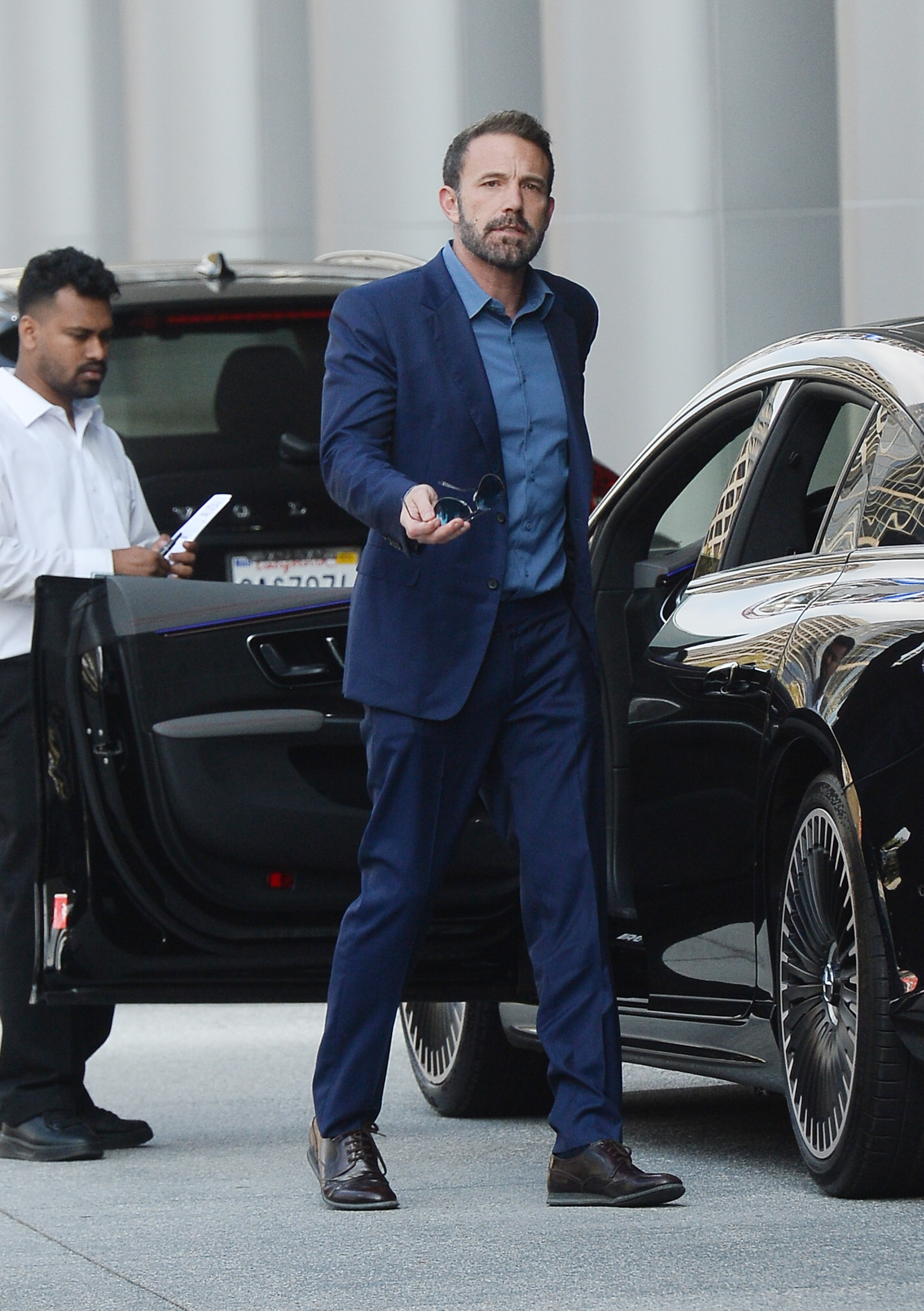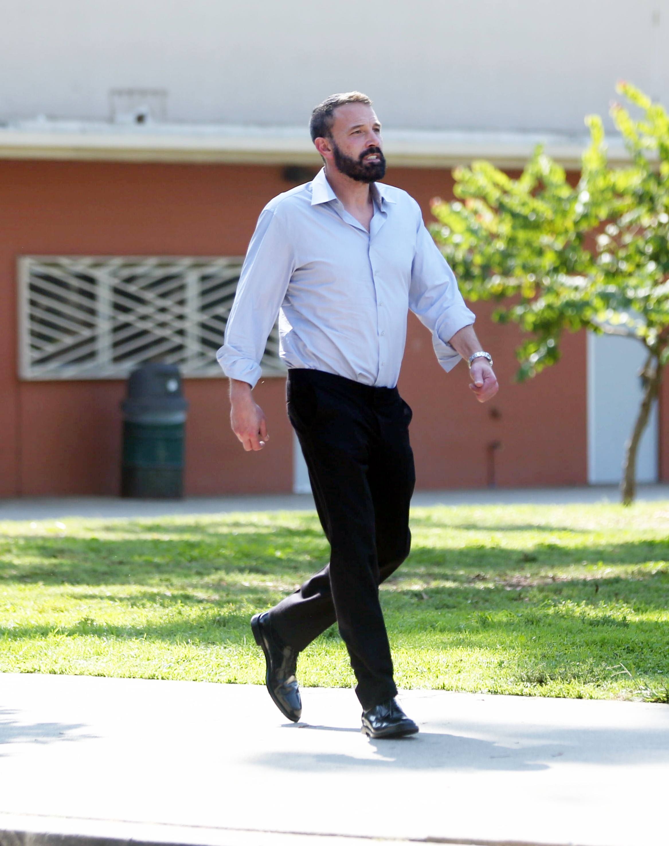 The Oscar winner chose to go business casual for this outing of his in the blue button-up number featuring black slacks and some dress shoes.