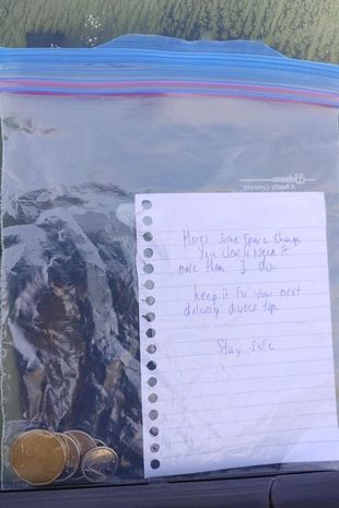Well, the driver wrote to the customer, “Here’s some spare change you clearly need more than I do. Keep it for your next delivery driver’s tip. Stay safe.”