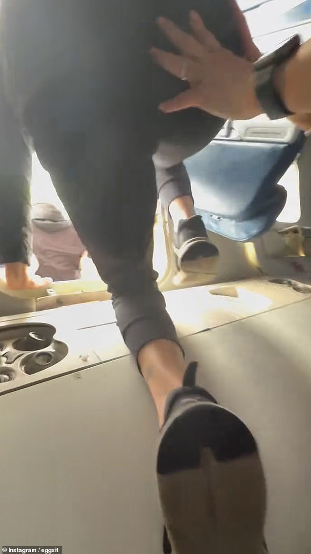 Brave cabin crew members could be seen assisting many out while another could be heard scolding the person taking the video, asking him not to as this was a serious situation.