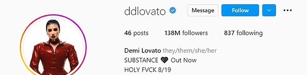 The change of heart comes a year after Demi surprised her followers on Twitter as she came out as non-binary.