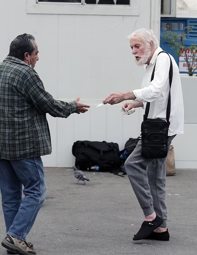 Dick Van Dyke was pictured handing out cash to homeless people and job seekers in Malibu.