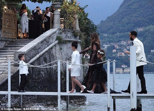 Viral images from the event in Italy featured guests boarding onto a boat to reach the stunning Villa Pizzo in Lake Como where the beautiful vow renewal ceremony took place.