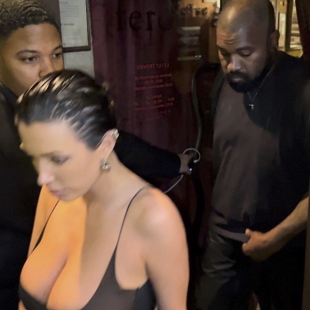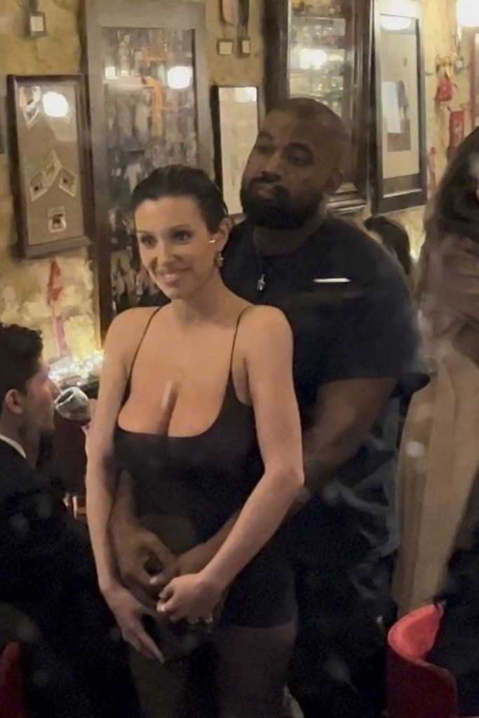 Kanye West was seen cuddling up to his wife Bianca Censori at Paris Fashion after the Yeezy architect was pictured displaying her assets in another controversial number.