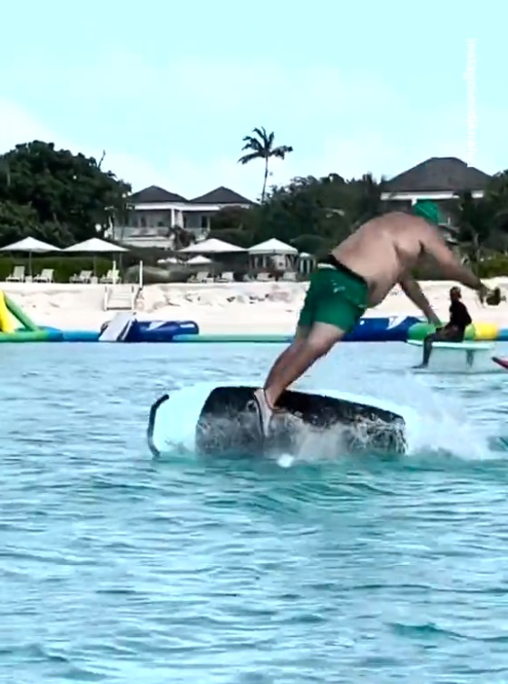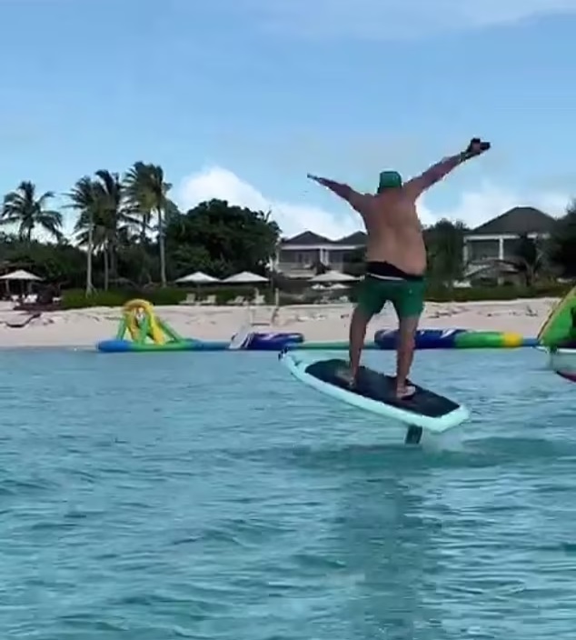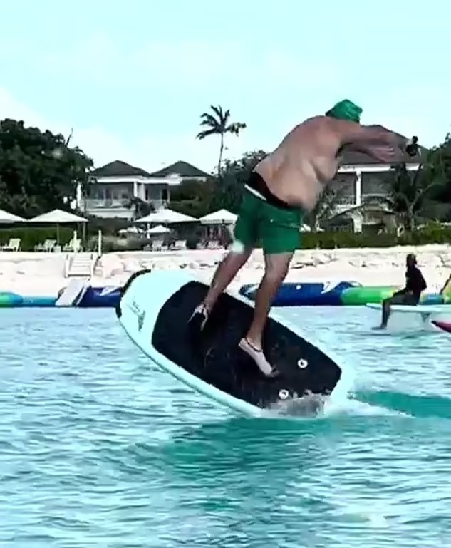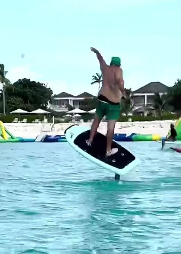 Besides sharing the awkward clip showing him falling off his surfing board and hitting the water, Khaled also shared footage showing him getting a therapeutic massage to recover from his injuries.