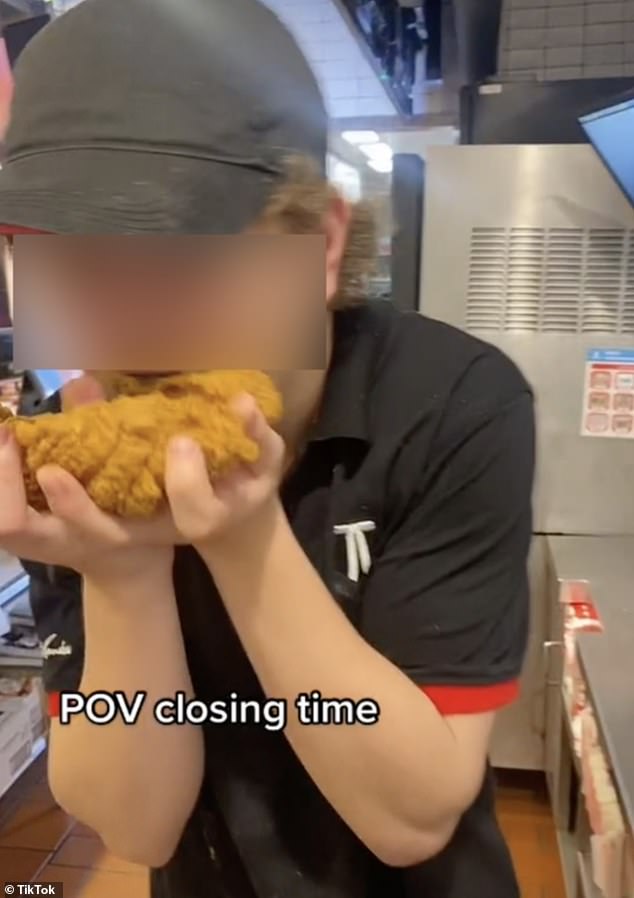 The shocking footage sees the employee first pulling out a giant tray of chicken from the hot oven. And then soon after that, the other employee picks up the pieces and started to examine them all before licking them and biting right into them,
