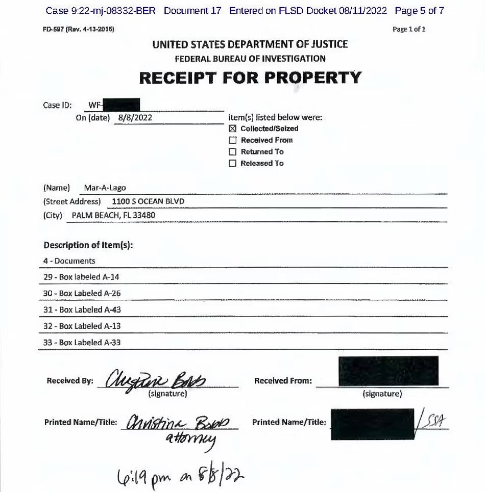 The former president’s Mar-a-Lago estate was raided on Monday as federal agents carried out a search warrant to look for documents that Trump allegedly took with him when he left the White House.