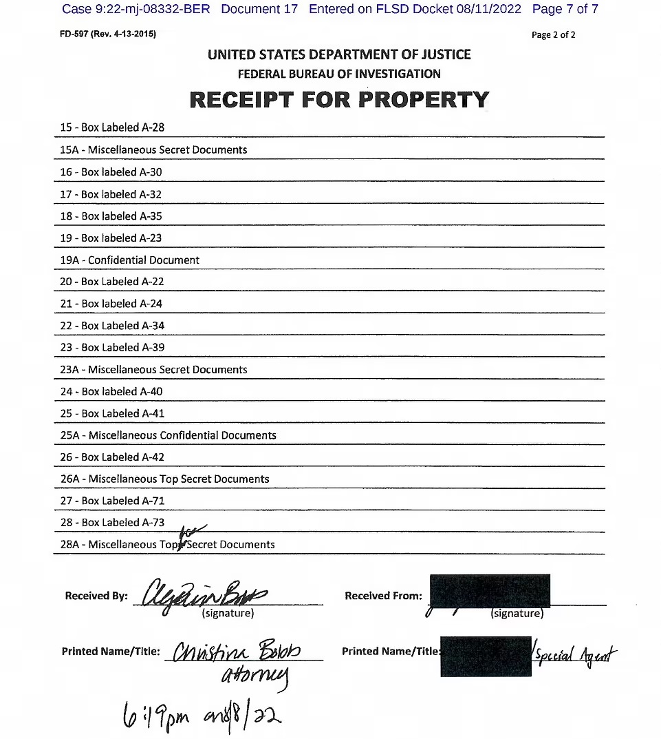 Newly unsealed records have since revealed that the feds retrieved 11 sets of classified documents from the estate. Some of the seized documents were marked as ‘secret,’ ‘top secret,’ and ‘confidential.’
